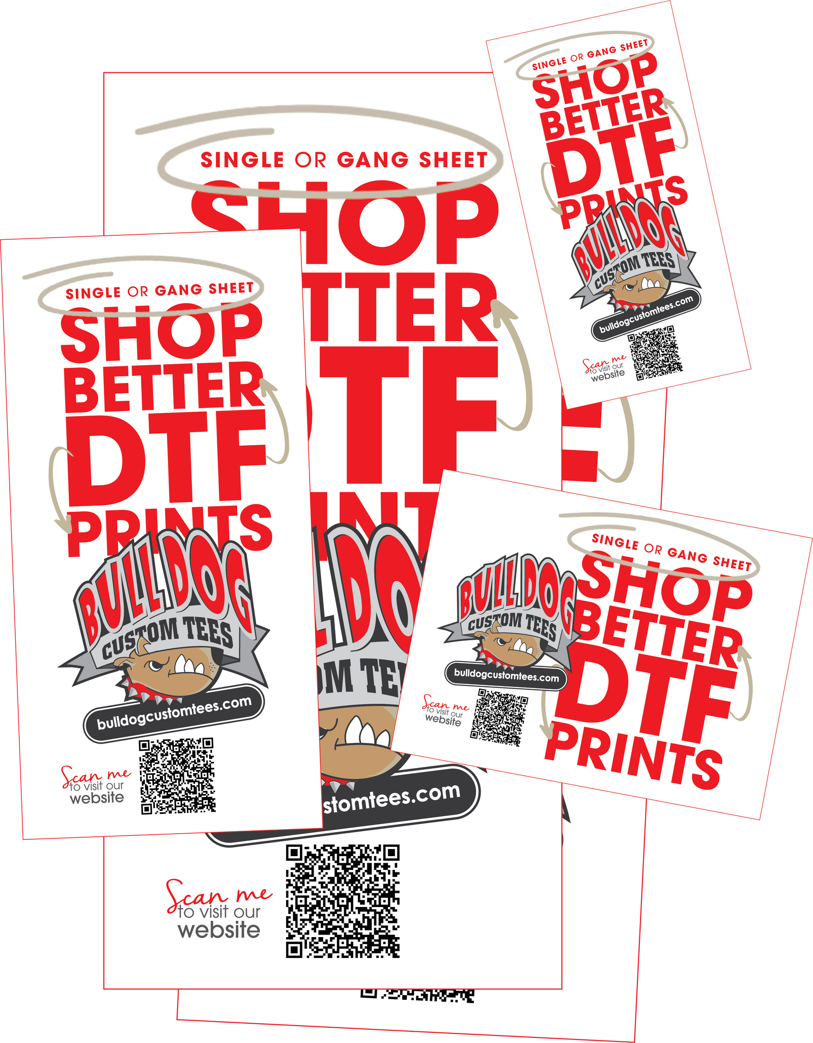 To avoid art fees, all art must be provided in the colors you would like printed. Full-Color DTF transfers will be printed in CMYK.